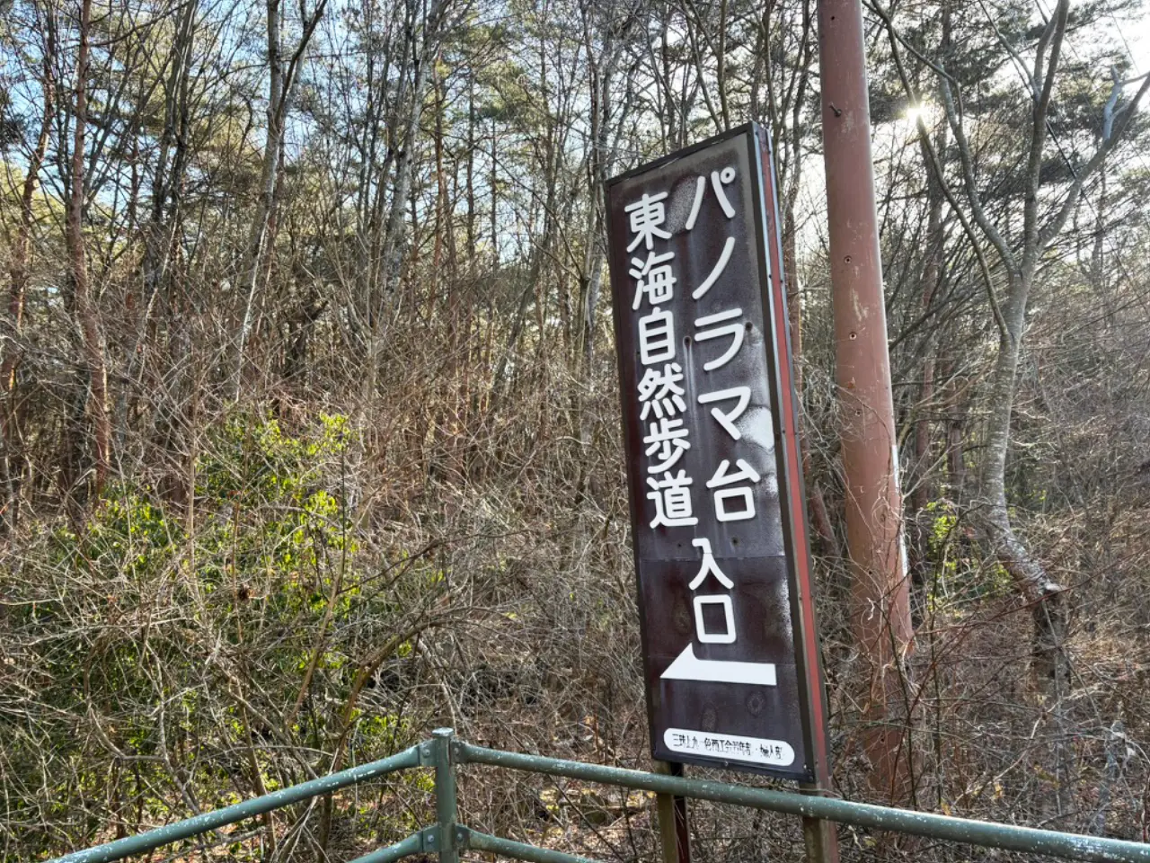 県営本栖湖駐車場を出てしばらく国道を歩くと、トンネル手前の右側に「パノラマ台東海自然道入口」の脇道があります。
